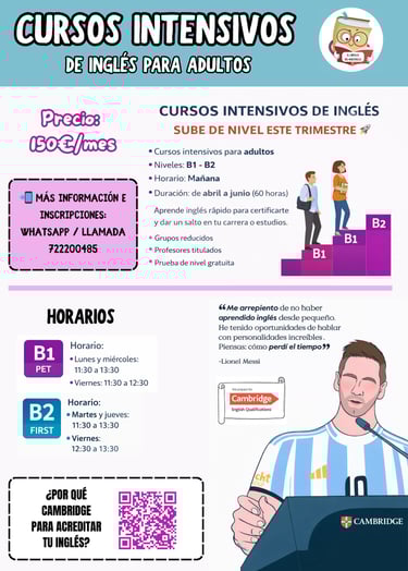 Estos cursos intensivos son una excelente oportunidad para subir de nivel, certificar tu inglés y abrir nuevas oportunidades académicas y profesionales.